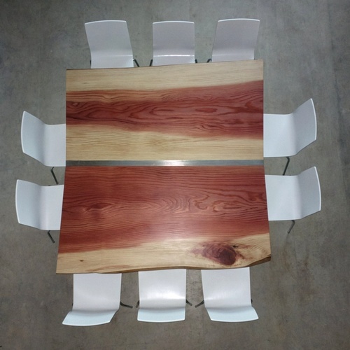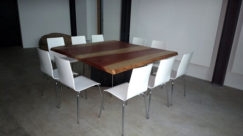 Entwurf und Bau eines Besprechungstisches für 10 Personen aus markant ausgewähltem Holz in Verbindung mit Stahl